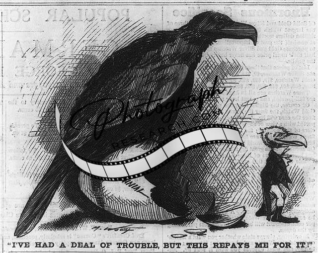 Uncle Sam as Baby Eagle,Centennial Egg,Large Eagle,trouble,1876