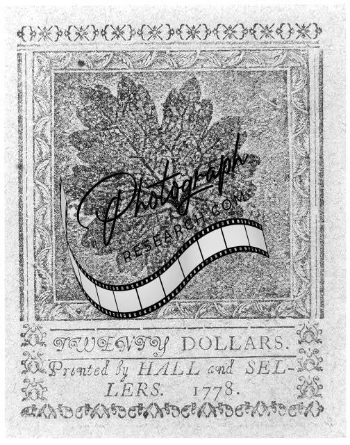 Verso of 'Twenty dollars...September 26,1778',Printed by Hall and Sellers