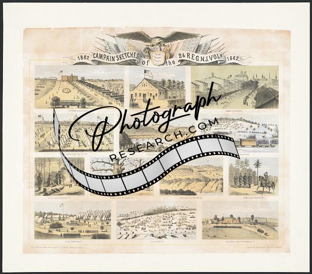 1862 campain [[i.e. campaign]] sketches of the 24 Reg. N.J. Vols.1862 / From sketches taken on the spot by J.G. Keyser, Bridgeton, N.J.; C. Kolb, lith.