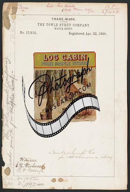 The Towle Syrup Company for Log Cabin Pure Maple Syrup brand Sirup