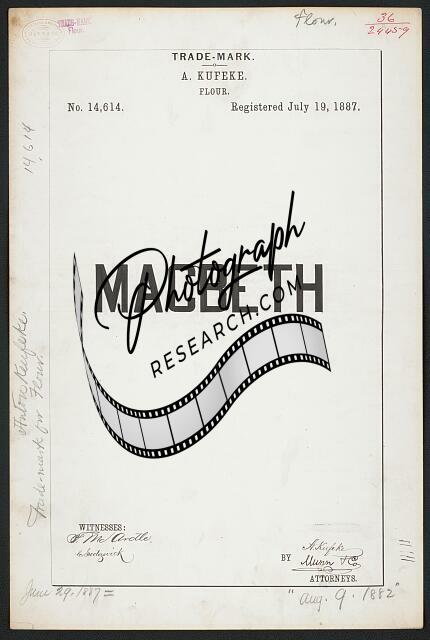 Title: [Trademark registration by A. Kufeke for Dominant. brand Flour]