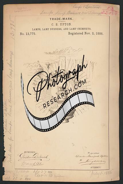 C. S. Upton for Niagara brand Lamps,Lamp Burners,Lamp Chimneys
