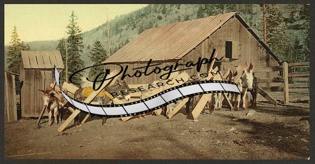 Burros,silver mine,donkeys,cliffs,buildings,CO,c1898