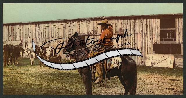 Cowboy throwing lariat,lasso,roping,Western US,c1898