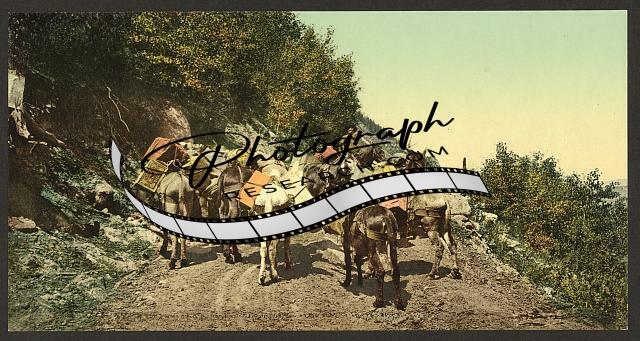 Pack train,donkeys,bundles,mountain road,CO,c1898