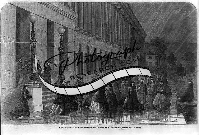 [[Lady clerks leaving the Treasury Department at Washington]]