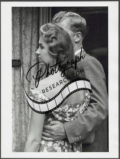 [[Couple embracing - woman in foreground, half-length portrait, facing left and s