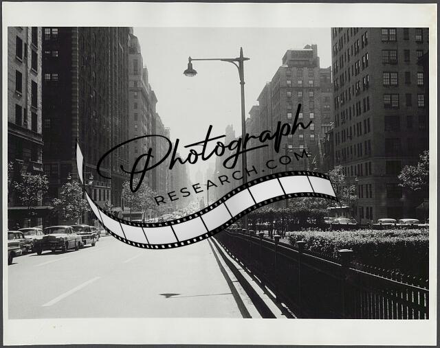 [[Aerial view of street, possibly Park Avenue, with raised medians separating tra