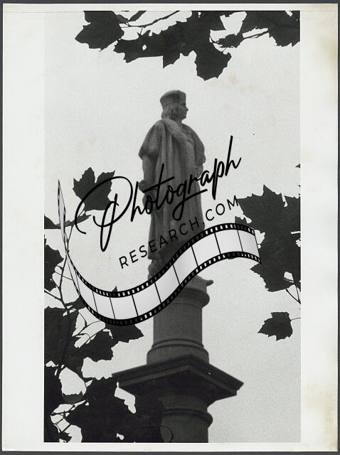 [[View of Christopher Columbus statue on top of Columbus Circle through tree bran