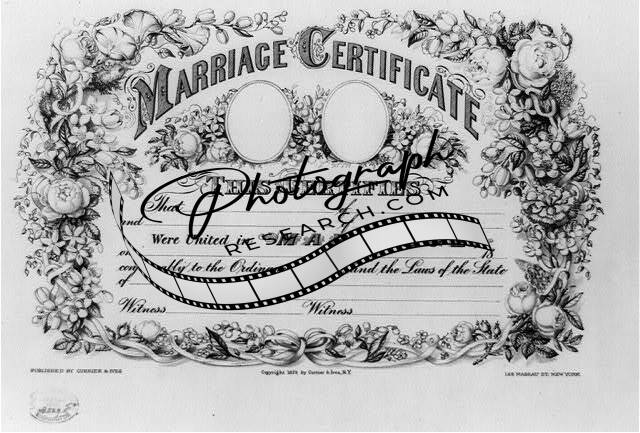 Photo of Marriage Certificate,Blank,Floral Border,Flowers,c1875
