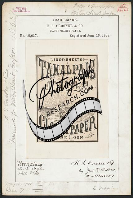 H. S. Crocker & Co. for Tamalpais Mills Closet Paper brand Water Closet Paper