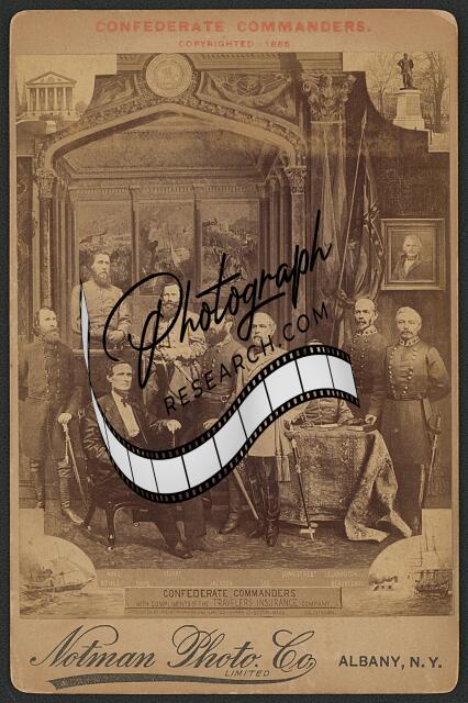 [[President Jefferson Davis, seated, surrounded by Confederate commanders from le