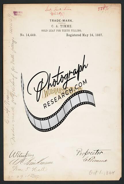 C. A. Timme for Wolrab's Gold brand Gold Leaf for Teeth Filling