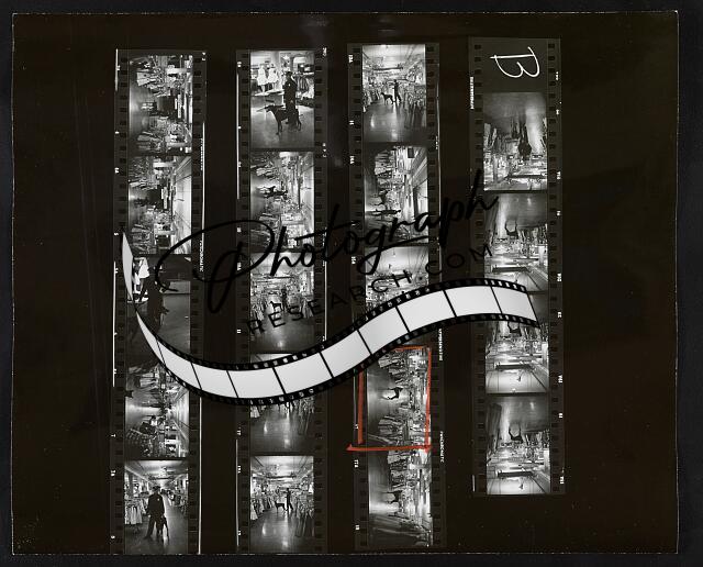 [[Doberman pinscher dogs patroling with night security guards at Macy's departmen
