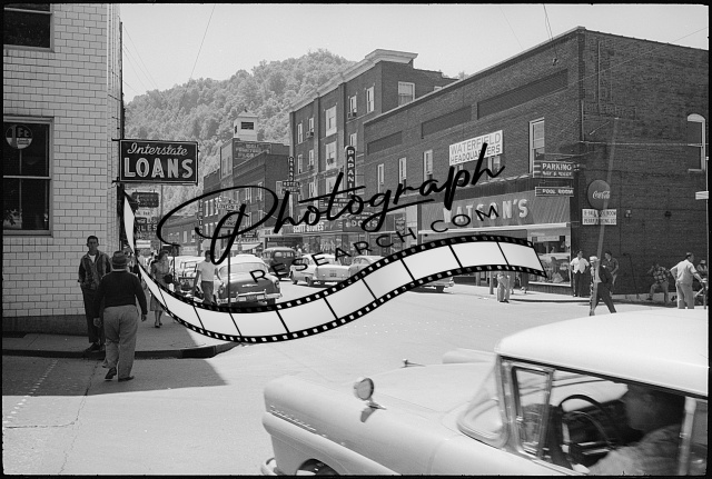 [[People and cars in streets including Lovern Street, during a mine strike in Ken