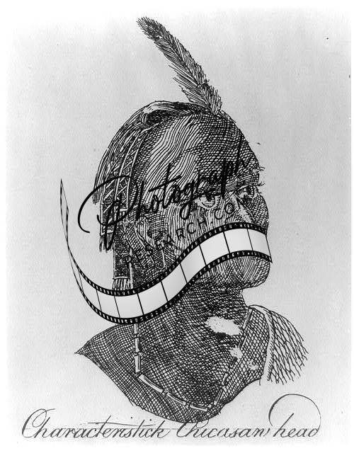 Characteristic Chicasan head,Chickasaw Indian,1775,feather
