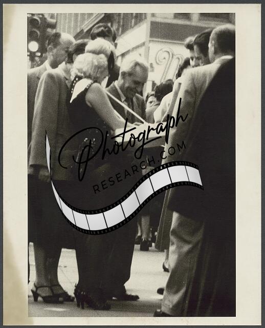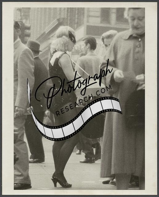 [[Cigarette girl in costume selling outside on New York City sidewalk]]
