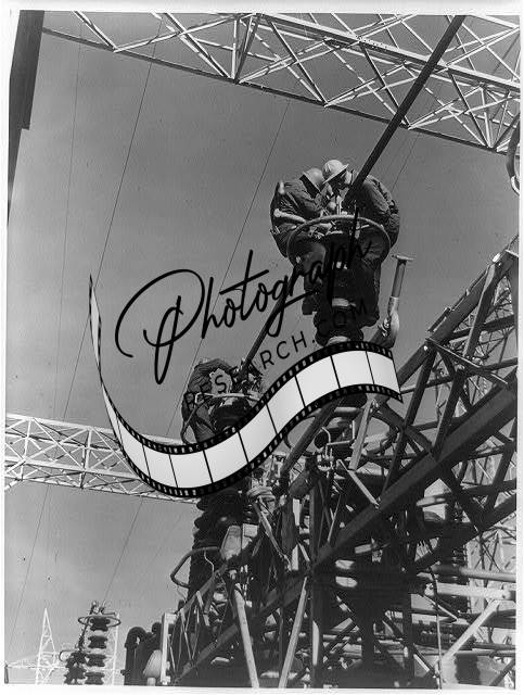 [[Boulder Dam, Colorado. Workers building high voltage towers]]