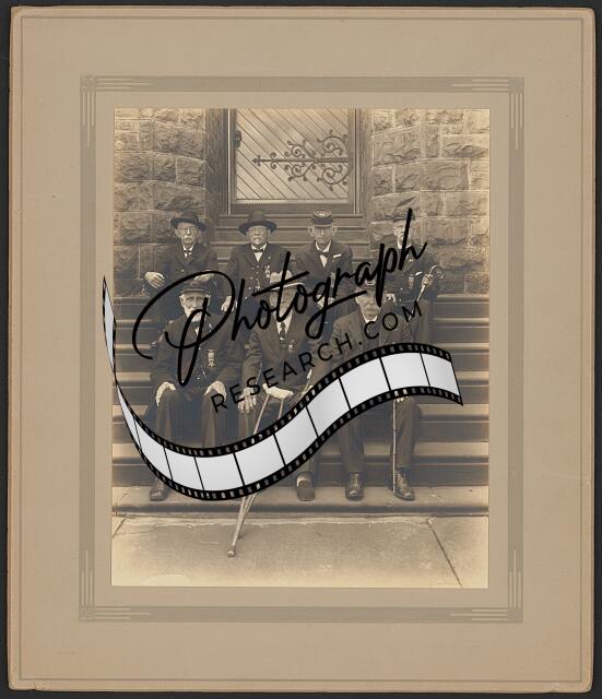 [[Seven Civil War veterans of G.A.R. Post #527 of Bethlehem, Pa., sitting on step