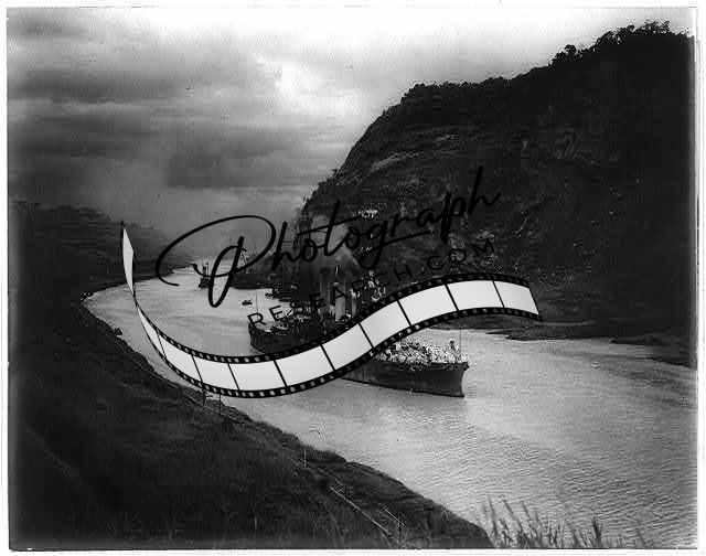 [[U.S.S. Missouri passing Cucaracha Slide, Panama Canal]]