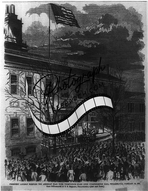 President Lincoln hoisting the American flag with thirty-four stars upon Indepen