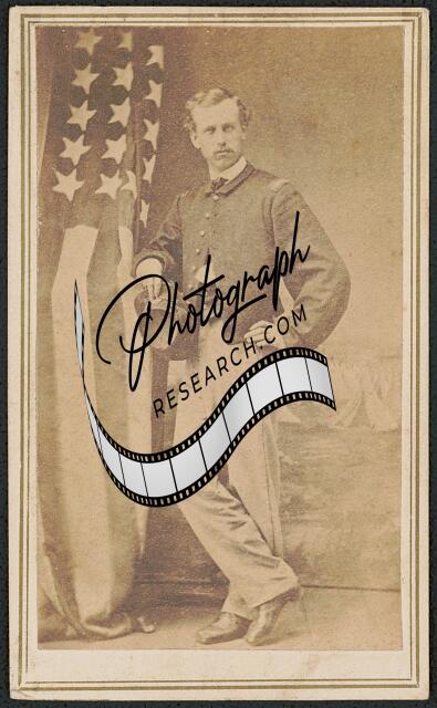 [[Unidentified soldier in Union uniform standing by American flag with painted ba