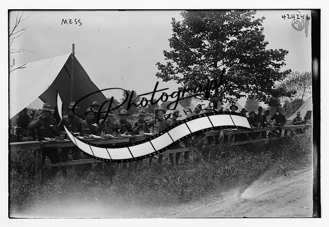 Signal Corps mess,men in line for food,tent,military,Bain News Service 2