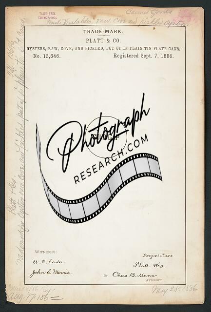 Platt & Co. for Gold Cap brand Oysters,Raw,Cove,Pickled