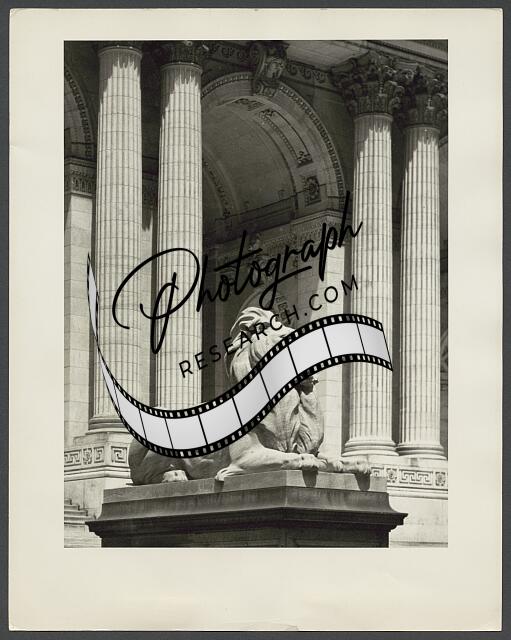 [[Lion sculpture on steps of the main branch of the New York Public Library on 5t