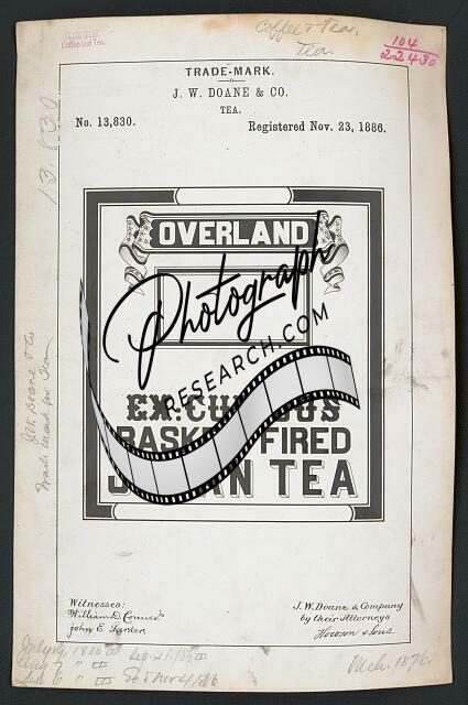 J. W. Doane & Co. for Overland Ex. Curious Basket Fired Japan Tea brand Tea
