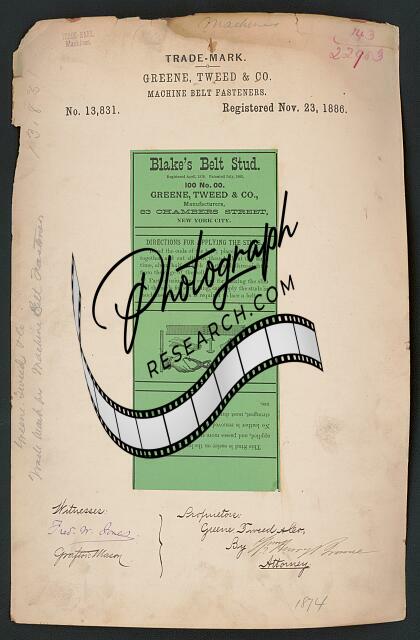 Greene,Tweed & Co. for Blake's Belt Stud. brand Machine Belt Fasteners