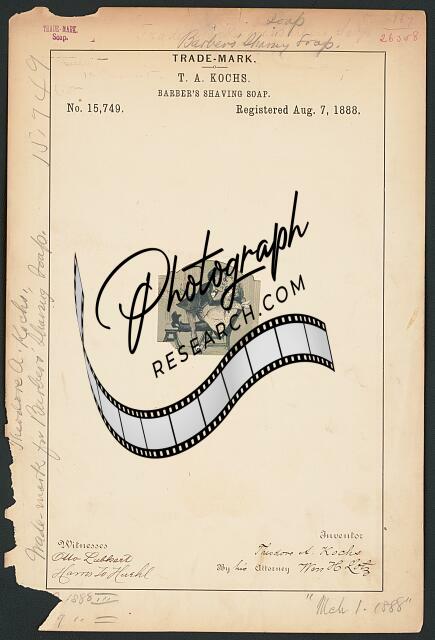 T. A. Kochs for Barber shaving man's face Logo brand Barber's Shaving Soap