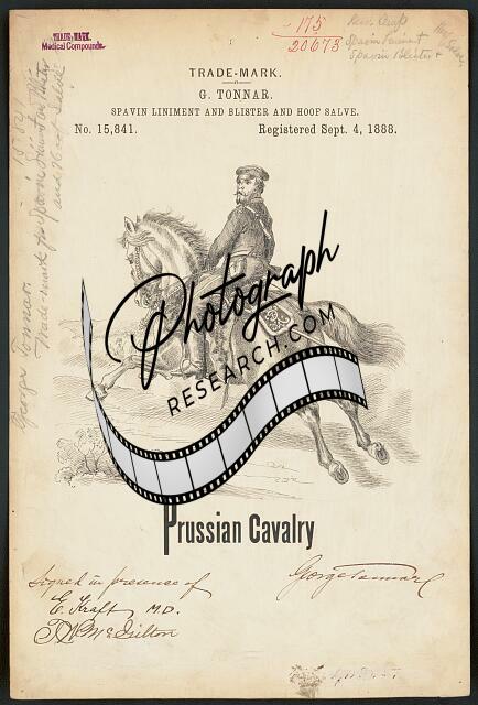G. Tonnar for Prussian Calvary brand Spavin Liniment,Blister,Hoof Salve