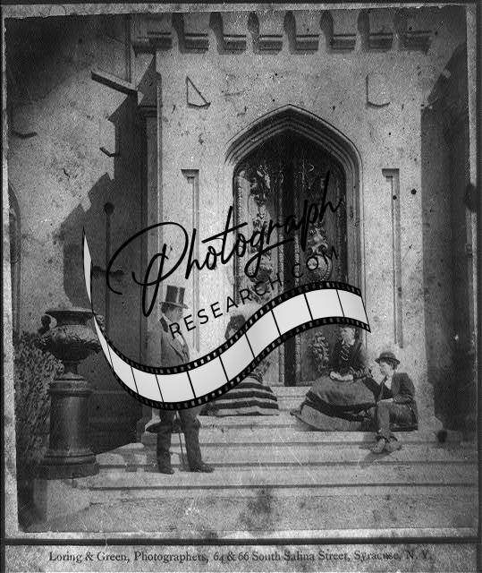 [[Views of the Yates Castle - Syracuse, New York. The Yates Family on the steps o