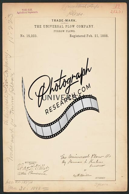 The Universal Plow Company for 'Universal.' brand Furrow Plows