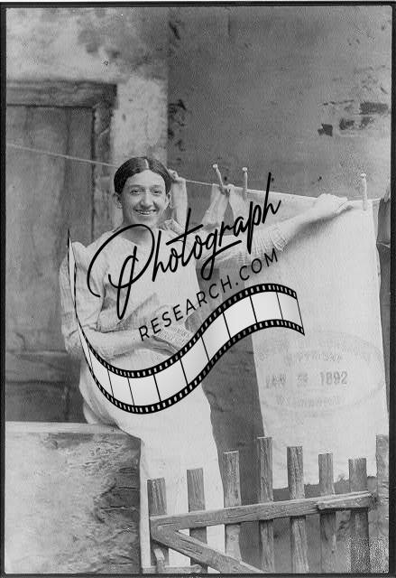Advertisement - woman at clothesline with bar of Kirkman's Borax Soap,c1891
