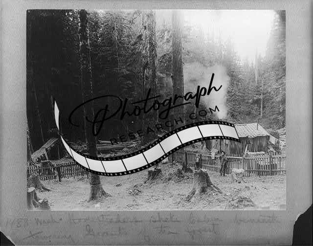 [[Washington homesteader's cabin beneath towering giants of the forest]]