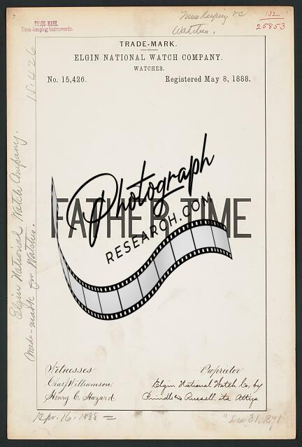 Title: [Trademark registration by Elgin National Watch Company for Old Father Time brand Watches]