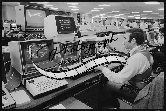 [[Man working at a Cincinnati NMS Computer System at the main Merrill Lynch Offic