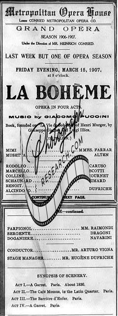 [[Metropolitan Opera Company program for "La Boheme," March 15, 1907]]