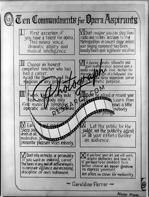 [[Ten commandments for opera aspirants by Geraldine Farrar]]