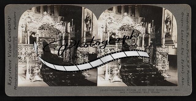 Ceremonial kissing of the holy remains, St. Barbara's Cathedral, Kief, Russia