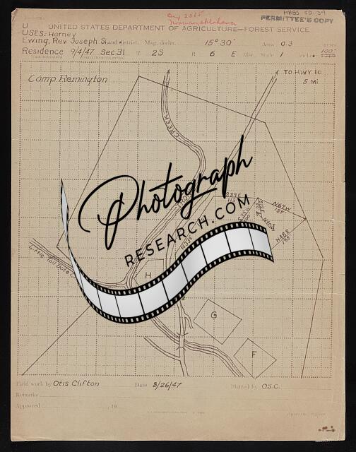 Photographs show cabin under construction and views at Camp Remington, Custer, South Dakota; also, portrait of John and Mary Mumford and a house at Norman, Oklahoma.