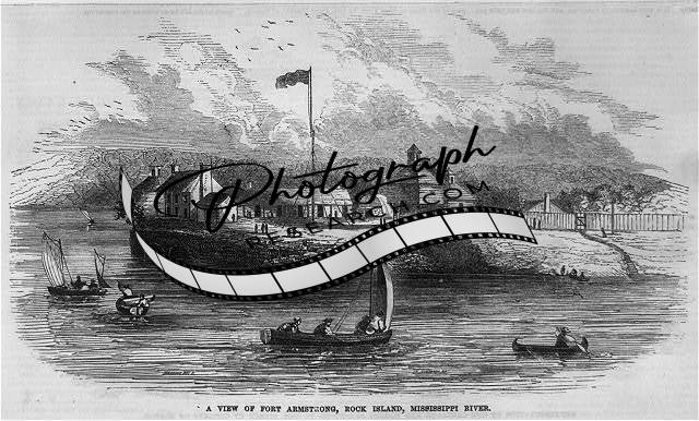 A view of Fort Armstrong, Rock Island, Mississippi River