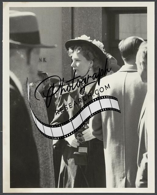 [[Woman holding camera on a crowded New York City street]]