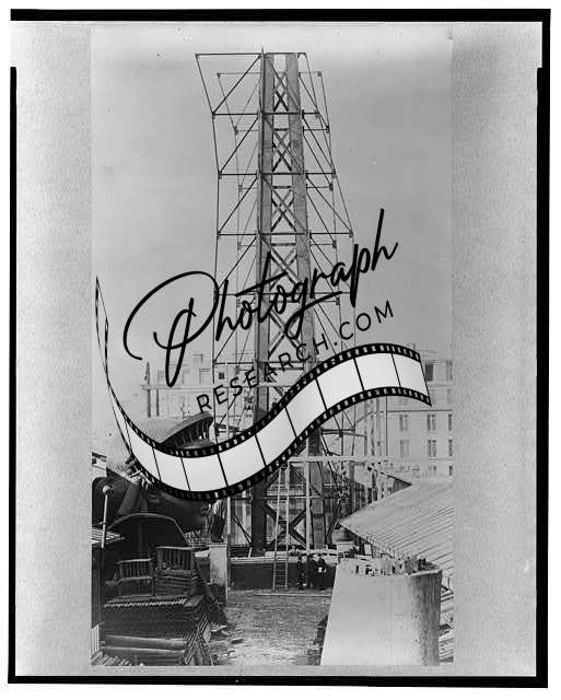 [[Parts of the Statue of Liberty in the background at the Gaget, Gauthier & Co. workshop in Paris, 1881-1883]]