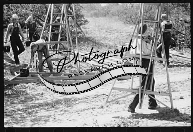 Cherry pickers,Door County,Wisconsin,WI,July 1940,John Vachon,FSA,Ladders,1