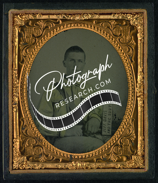 [[Unidentified soldier in Confederate uniform with bayonet and sign reading "Jeff