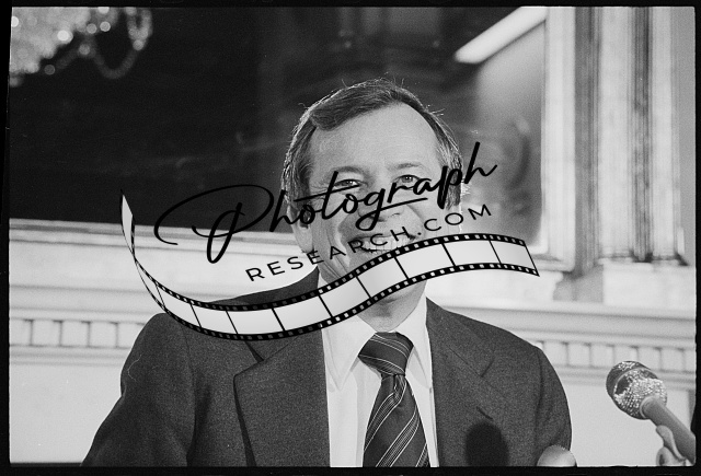 [[Senator Howard Baker and Representative John Rhodes at microphones, possibly du