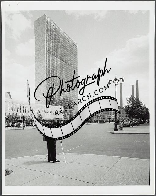 [[Street view of United Nations Headquarters shot from E. 45th Street and 1st Ave